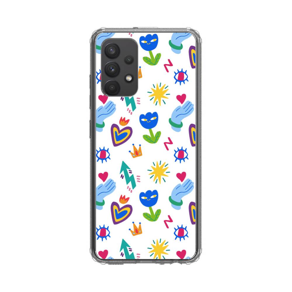 Niedliche Blumen und Herzen Graffitis Samsung Galaxy A32 (4G) Silikon Hülle● Sehr robust & langlebig