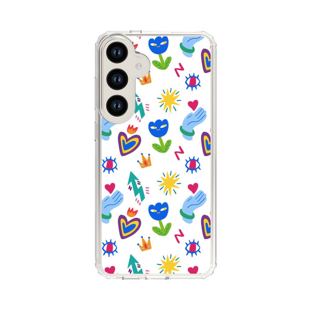 Niedliche Blumen und Herzen Graffitis Samsung Galaxy S24 Plus Silikon Hülle● Sehr robust & langlebig