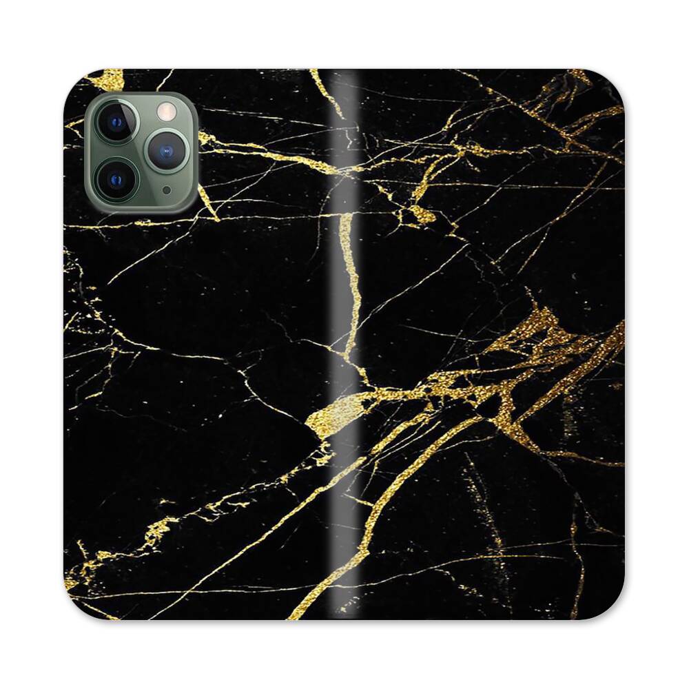 Schwarz & Gold Marmor Apple iPhone 11 Pro Max Flip Case● Seitlich klappbar