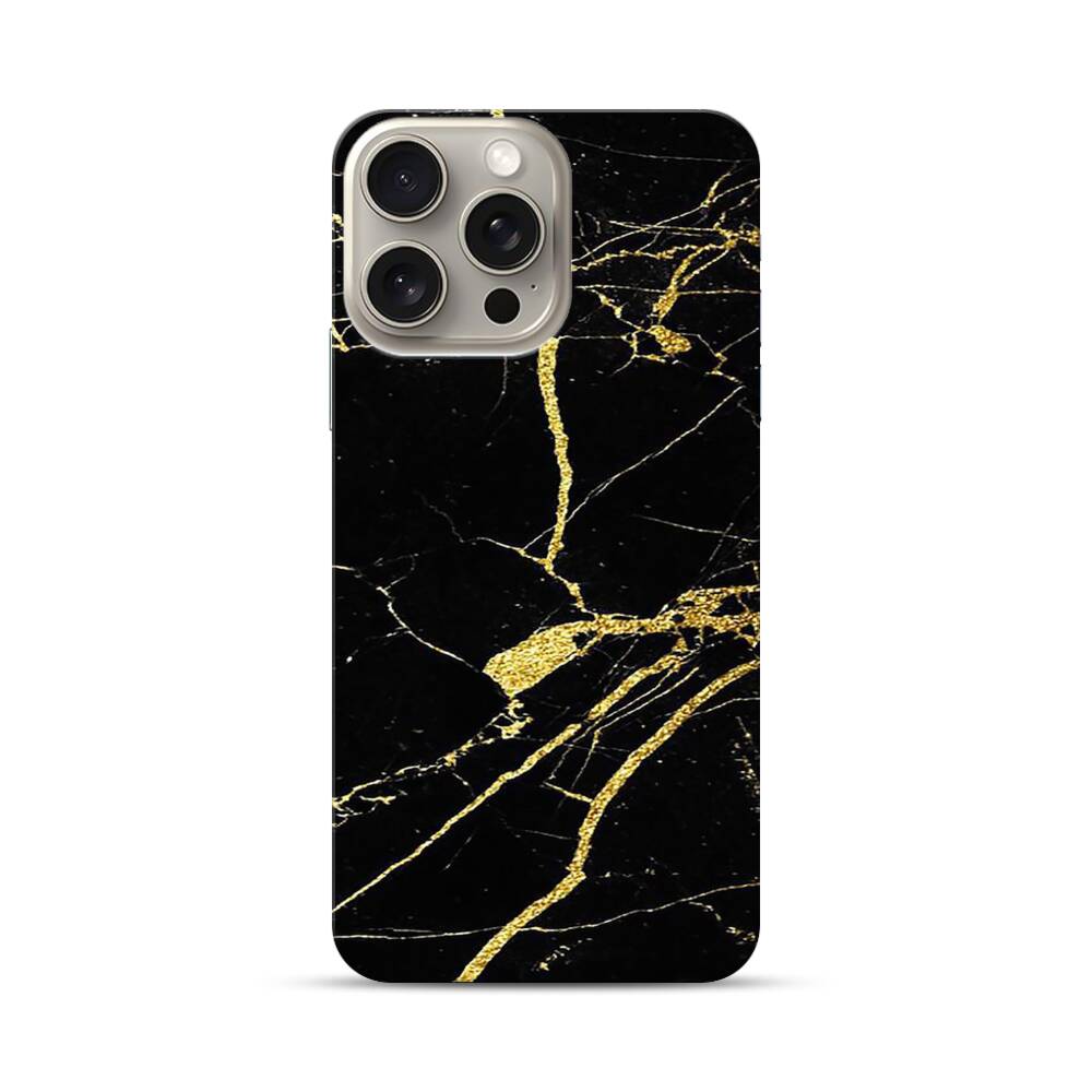 Schwarz & Gold Marmor Apple iPhone 15 Pro Max Hülle● Rundum bedruckbar