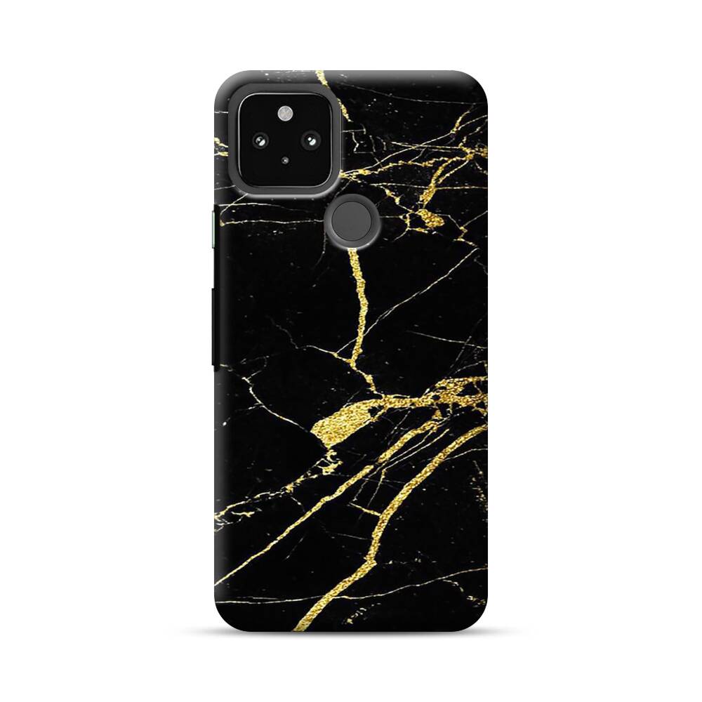 Schwarz & Gold Marmor Google Pixel 4a 5G Hülle● Rundum bedruckbar