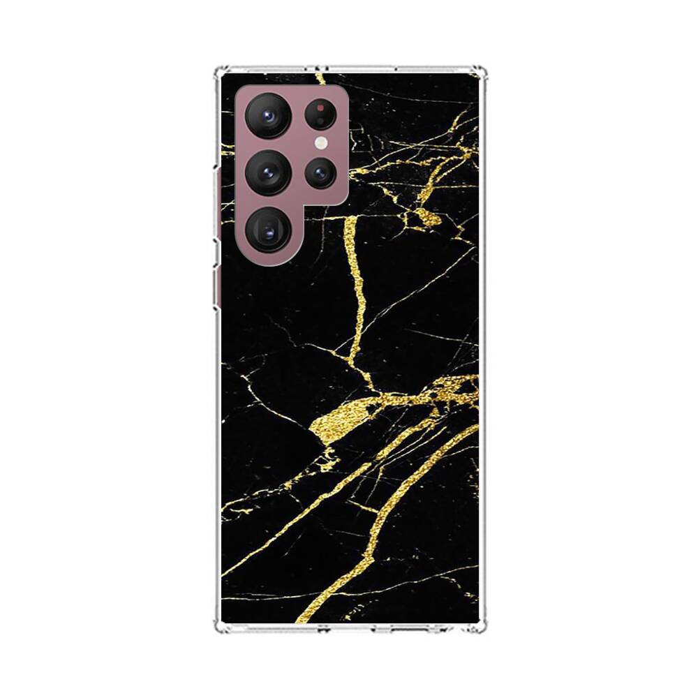 Schwarz & Gold Marmor Samsung Galaxy S22 Ultra Silikon Hülle● Sehr robust & langlebig