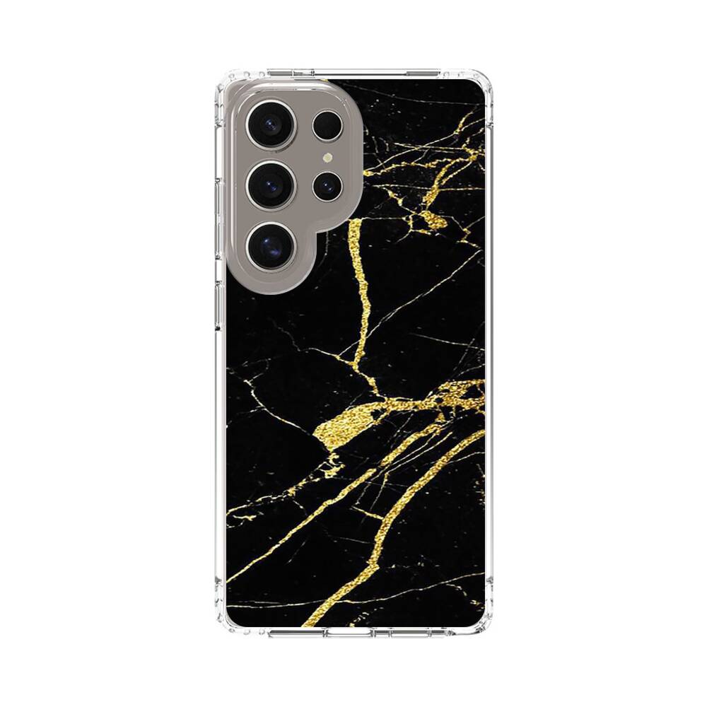 Schwarz & Gold Marmor Samsung Galaxy S25 Ultra Silikon Hülle● Sehr robust & langlebig