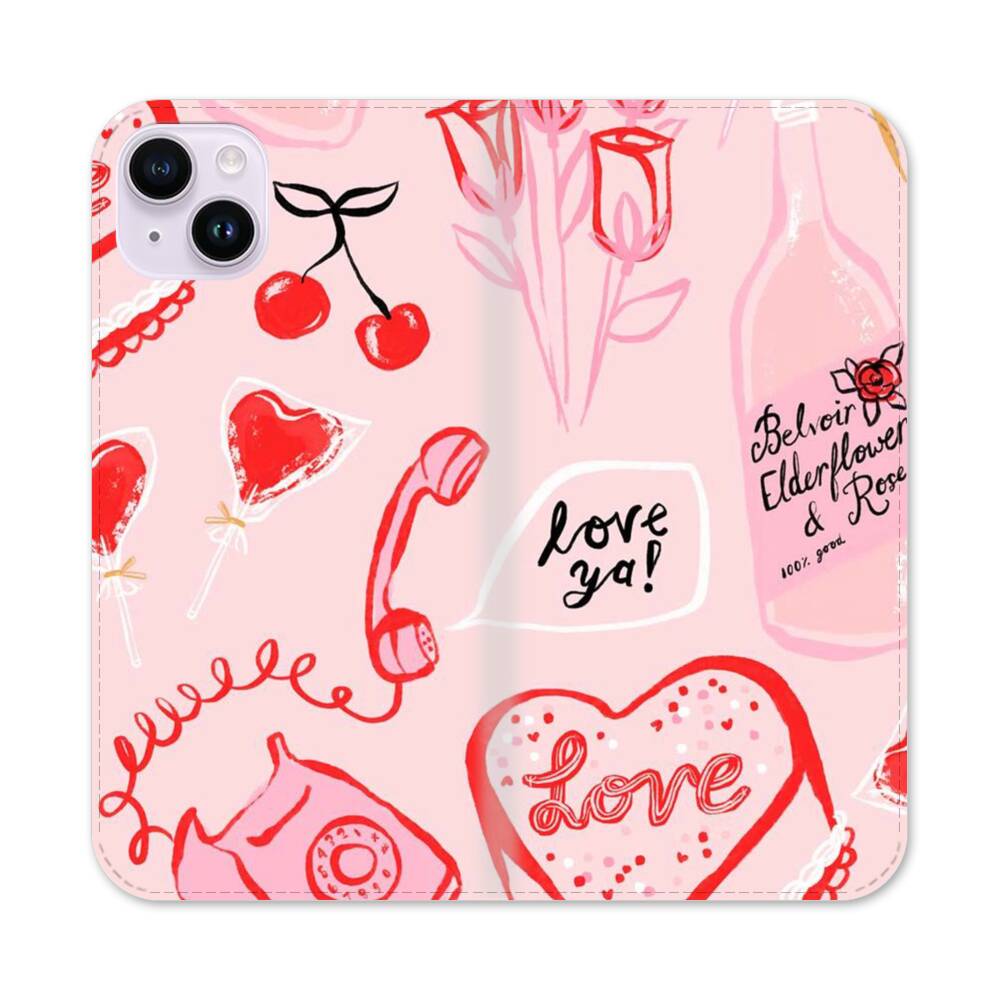 Pinke Liebe Apple iPhone 14 Plus Flip Case● Seitlich klappbar