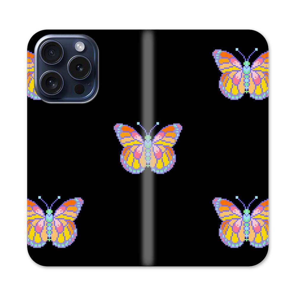 Nahtlose bunte Schmetterlinge Apple iPhone 15 Pro Flip Case● Seitlich klappbar