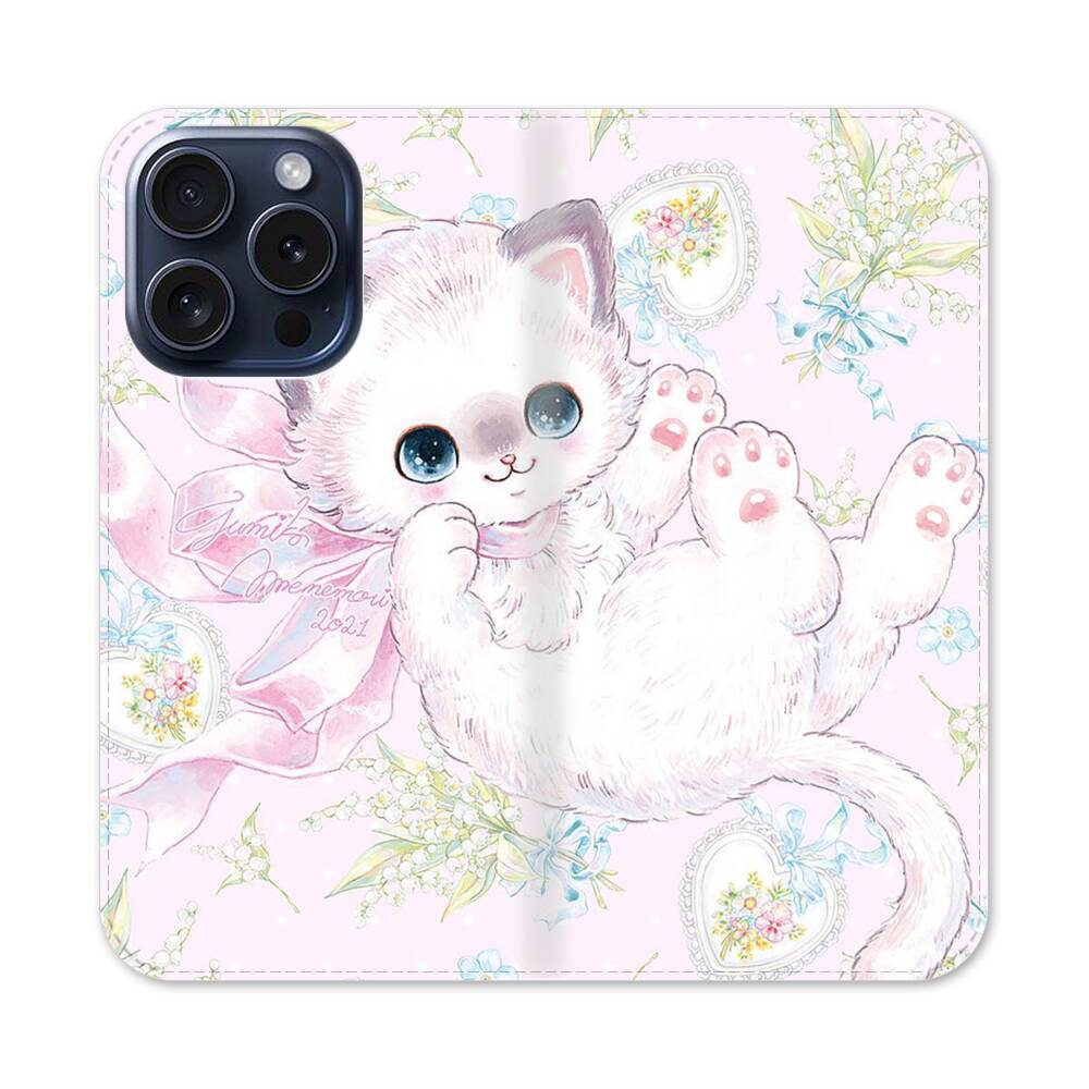 Pinke Kitty Apple iPhone 15 Pro Flip Case● Seitlich klappbar