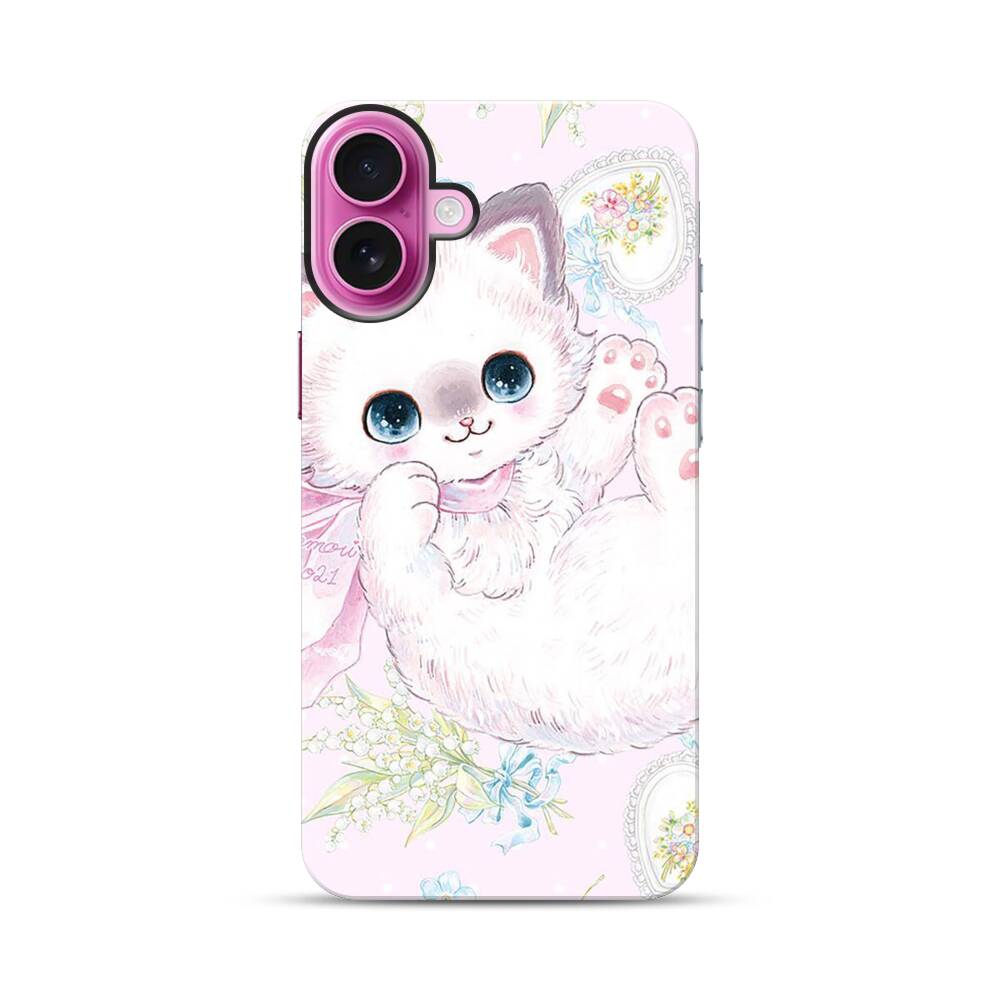 Pinke Kitty Apple iPhone 16 Plus Hybrid Case● Rundum bedruckbar