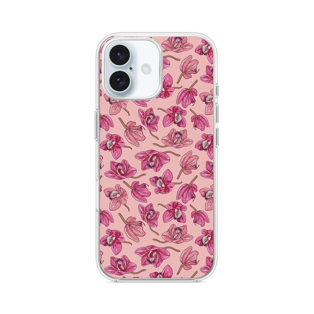 Pinke Orchidee iPhone 16 Plus MagSafe‑kompatible Silikonhülle mit Kamera‑Kickstand● Sehr robust & langlebig