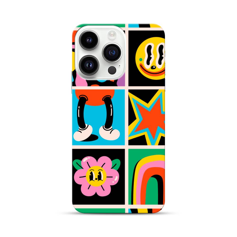 Lustige Cartoon Aufkleber Apple iPhone 14 Pro Hülle● Rundum bedruckbar
