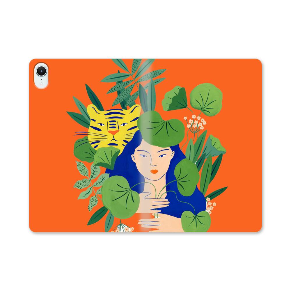 Dameprofil mit Tiger Apple iPad mini (2024) Flip Case● Seitlich klappbar