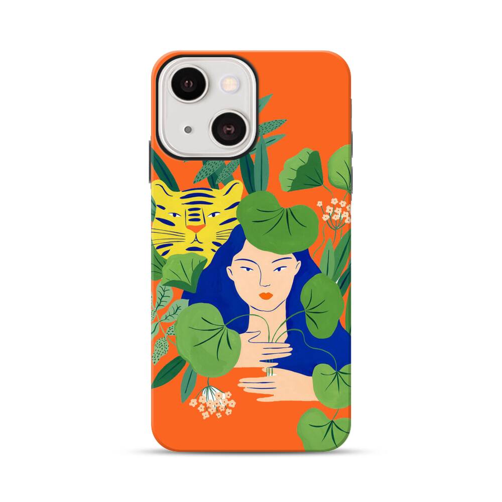 Dameprofil mit Tiger Apple iPhone 13 Hybrid Case● Rundum bedruckbar