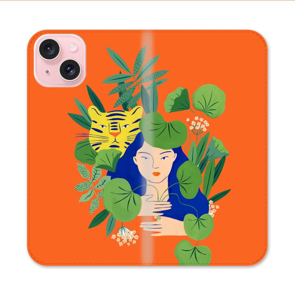 Dameprofil mit Tiger Apple iPhone 15 Flip Case● Seitlich klappbar