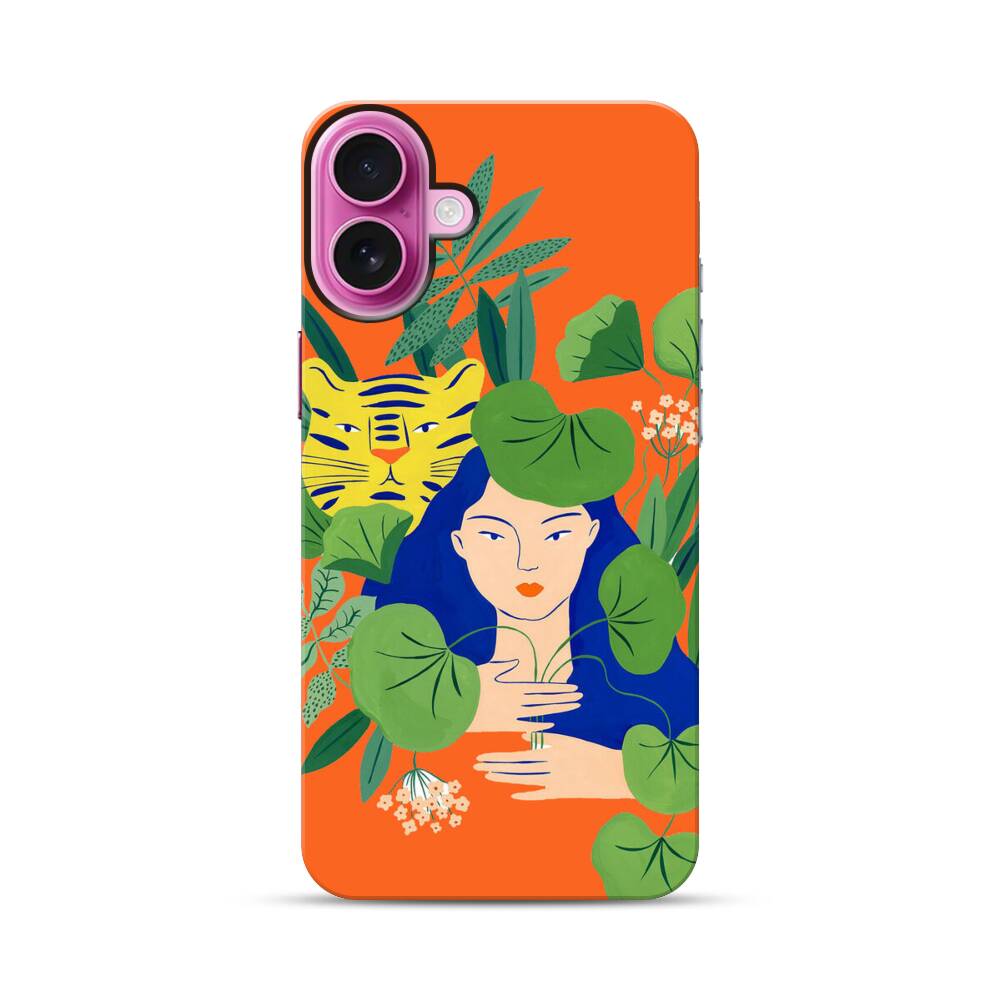 Dameprofil mit Tiger Apple iPhone 16 Plus Hybrid Case● Rundum bedruckbar