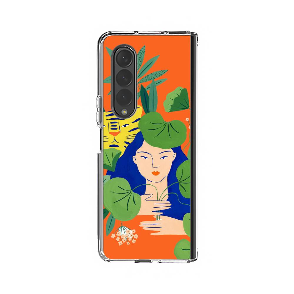 Dameprofil mit Tiger Samsung Galaxy Z Fold 4 Silikon Hülle● Sehr robust & langlebig