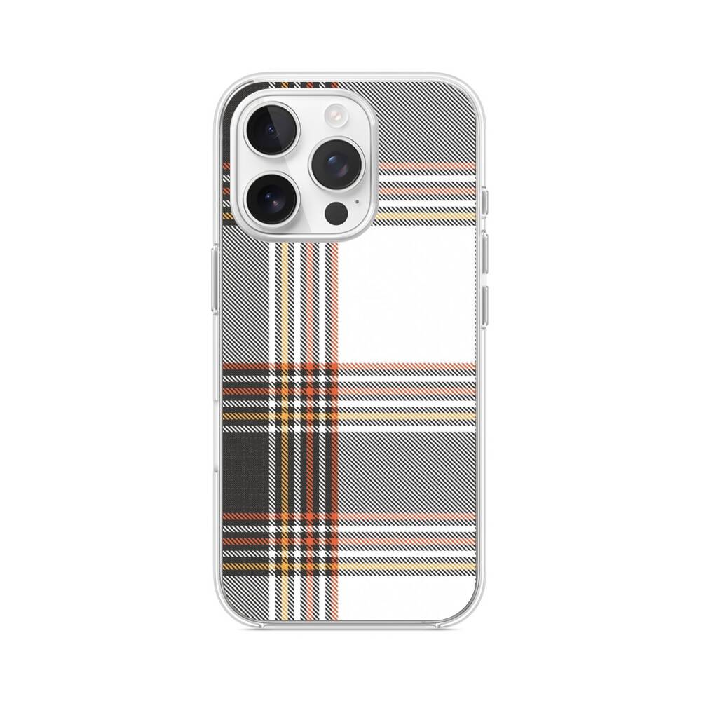 Braune Karomuster iPhone 15 Pro MagSafe‑kompatible Silikonhülle mit Kamera‑Kickstand● Sehr robust & langlebig