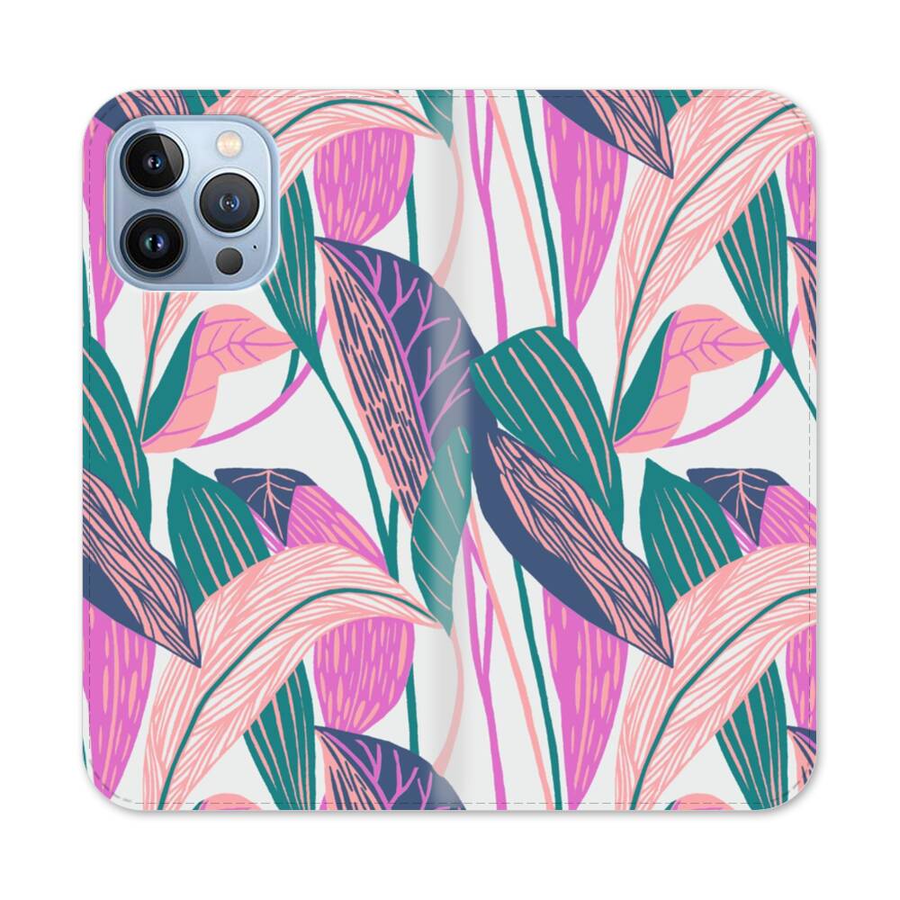 Violette Blätter Apple iPhone 13 Pro Max Flip Case● Seitlich klappbar