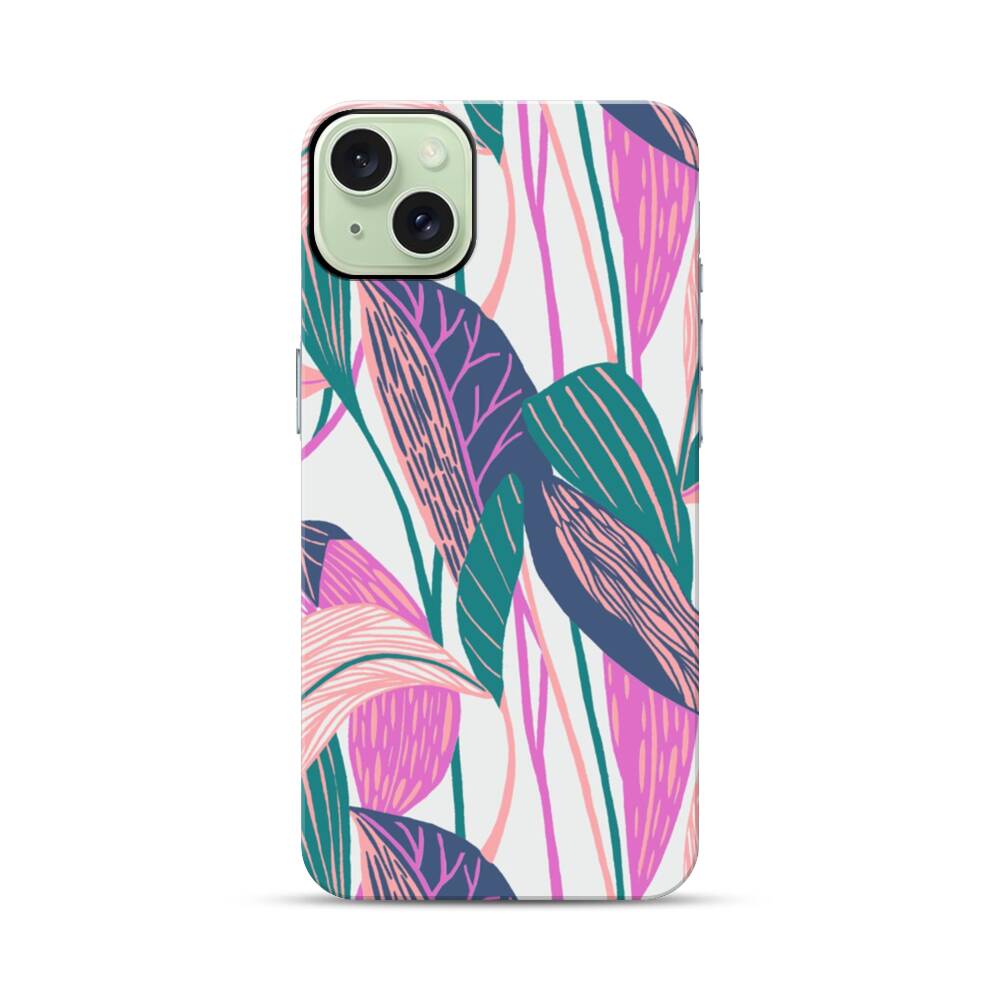 Violette Blätter Apple iPhone 15 Plus Hybrid Case● Rundum bedruckbar