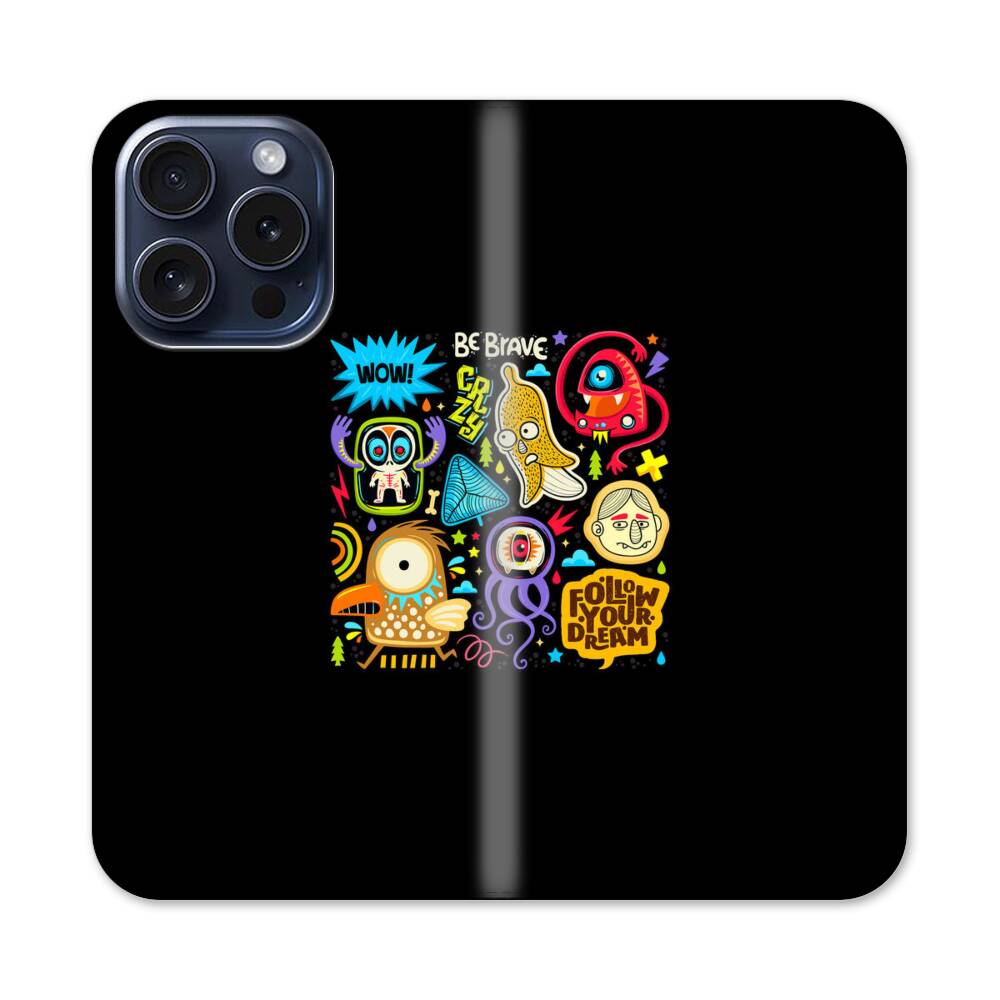 Mutige Monster Apple iPhone 15 Pro Flip Case● Seitlich klappbar