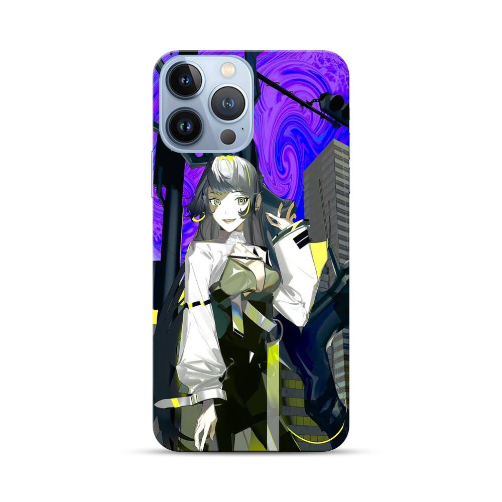 Mädchen vor dem violetten Mond Apple iPhone 13 Pro Max Hülle● Rundum bedruckbar
