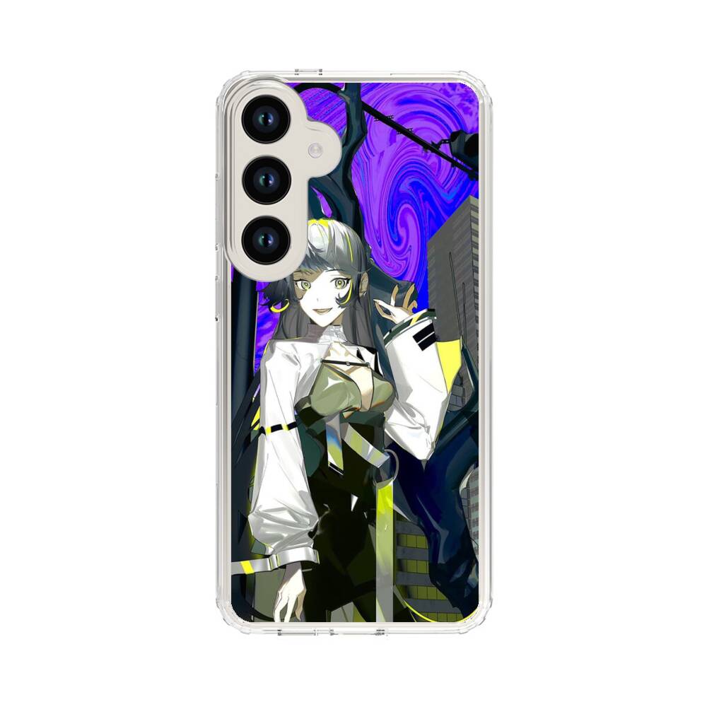 Mädchen vor dem violetten Mond Samsung Galaxy S24 Plus Silikon Hülle● Sehr robust & langlebig