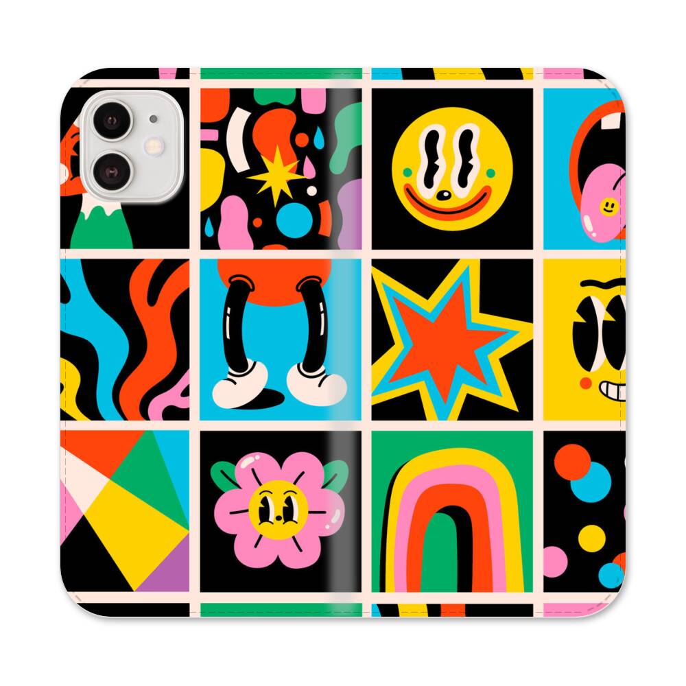 Lustige Cartoon Aufkleber Apple iPhone 12 Mini Flip Case● Seitlich klappbar