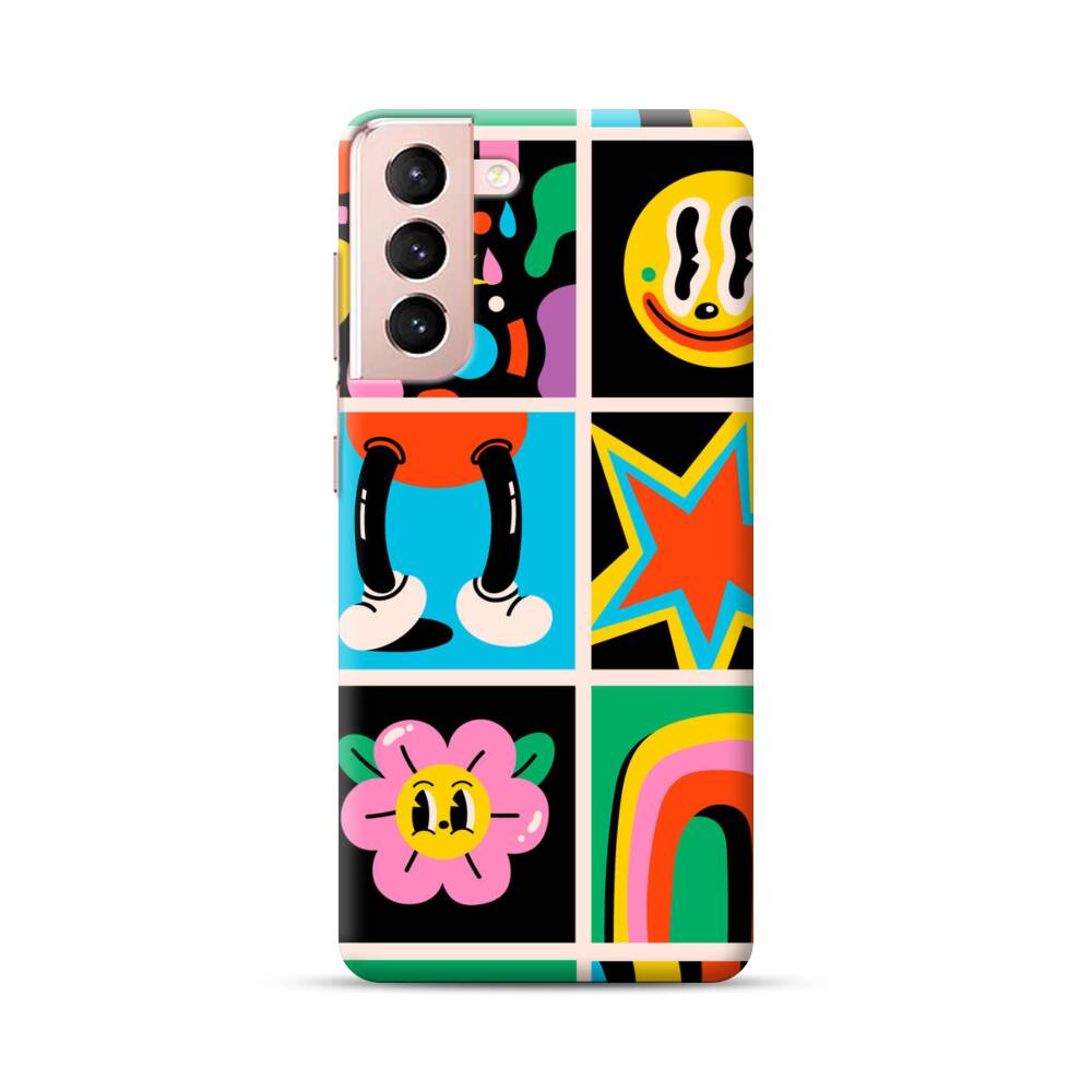 Lustige Cartoon Aufkleber Samsung Galaxy S21 Hülle● Rundum bedruckbar