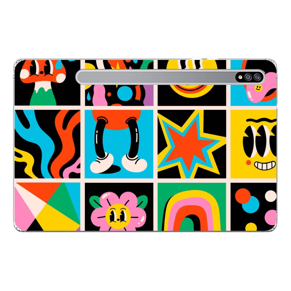 Lustige Cartoon Aufkleber Samsung Galaxy Tab S7 Silikon Hülle● Sehr robust & langlebig