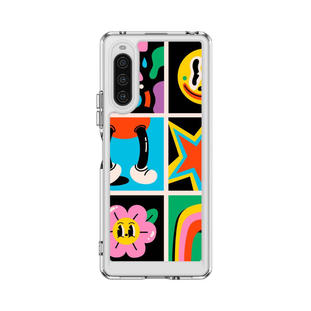Lustige Cartoon Aufkleber Sony Xperia 10 V Silikon Hülle● Sehr robust & langlebig