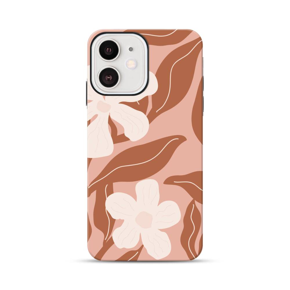 Braune Blüten Apple iPhone 12 Mini Hybrid Case● Rundum bedruckbar