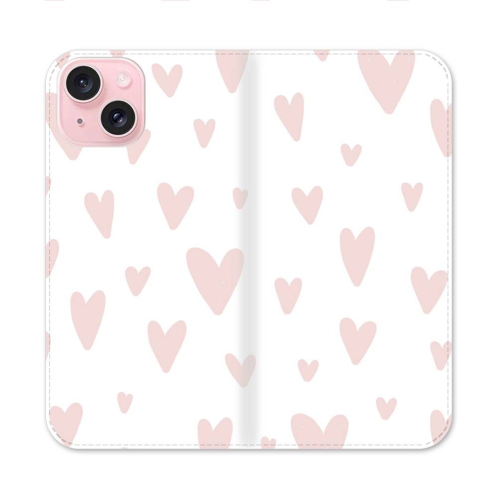 Pinke Herzchen Apple iPhone 15 Flip Case● Seitlich klappbar