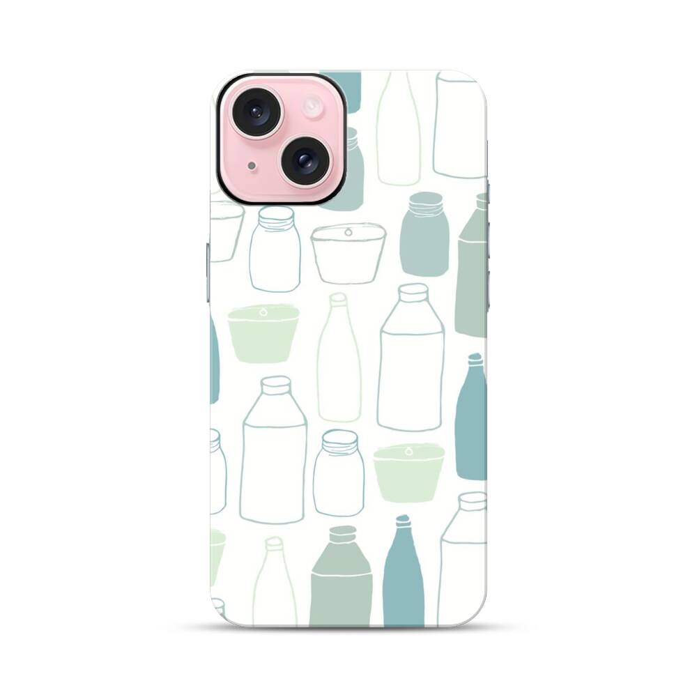 Hand Gezeichnete Flaschen Apple iPhone 15 Hybrid Case● Rundum bedruckbar