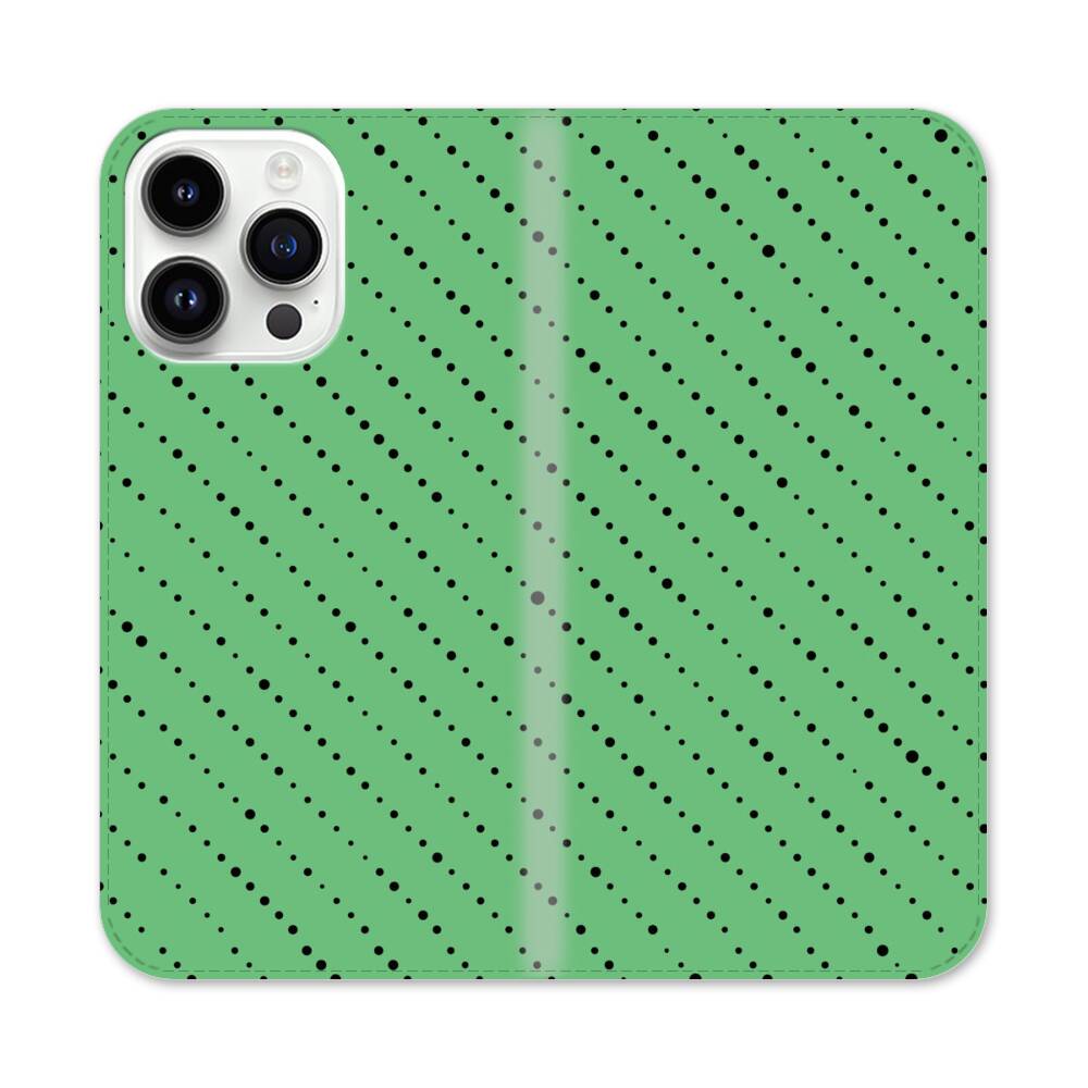 Schwarze Perlen auf grünen Hintergrund Apple iPhone 14 Pro Max Flip Case● Seitlich klappbar