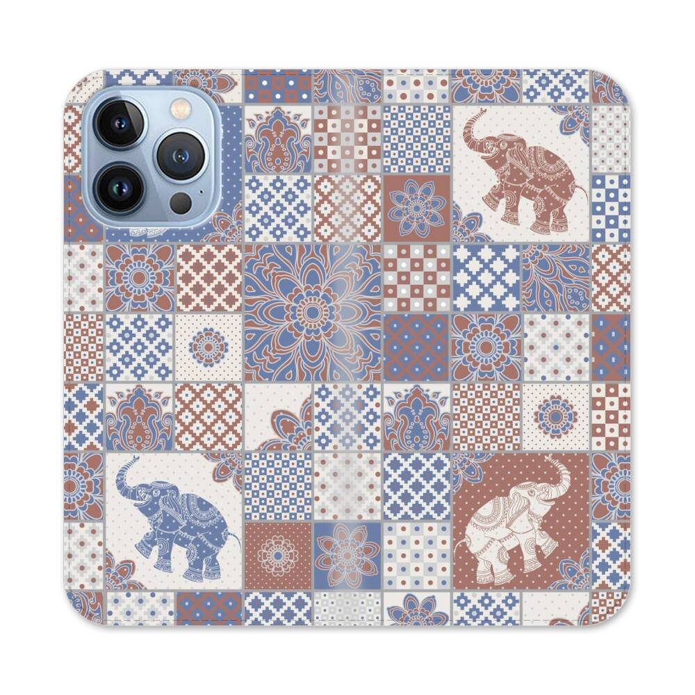 Schöne klassische Blumenmuster und Elefanten Apple iPhone 13 Pro Flip Case● Seitlich klappbar