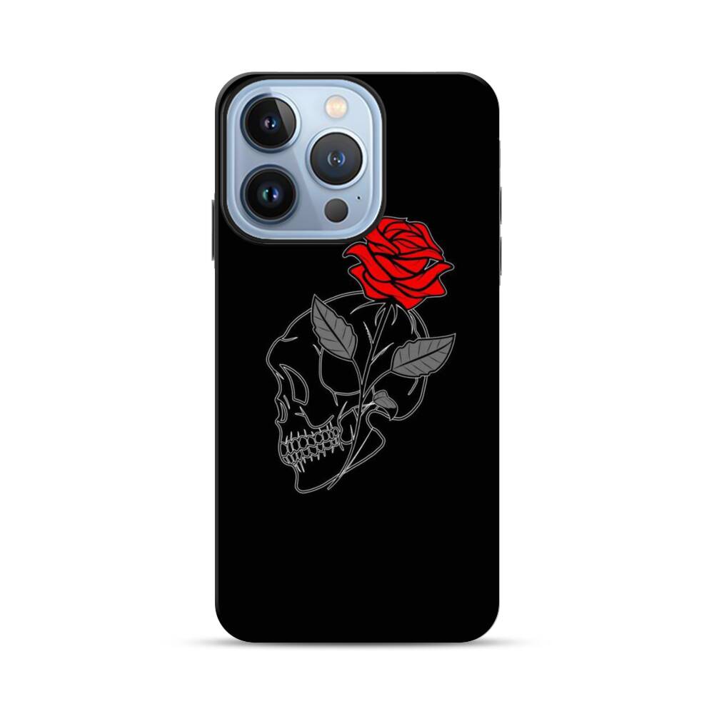 Schädel mit Rose Apple iPhone 13 Pro Hybrid Case● Rundum bedruckbar