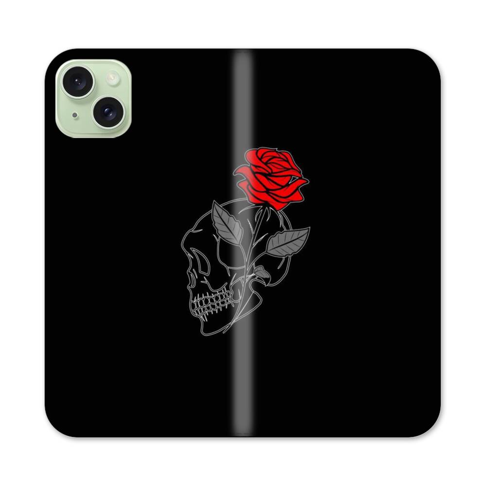 Schädel mit Rose Apple iPhone 15 Plus Flip Case● Seitlich klappbar