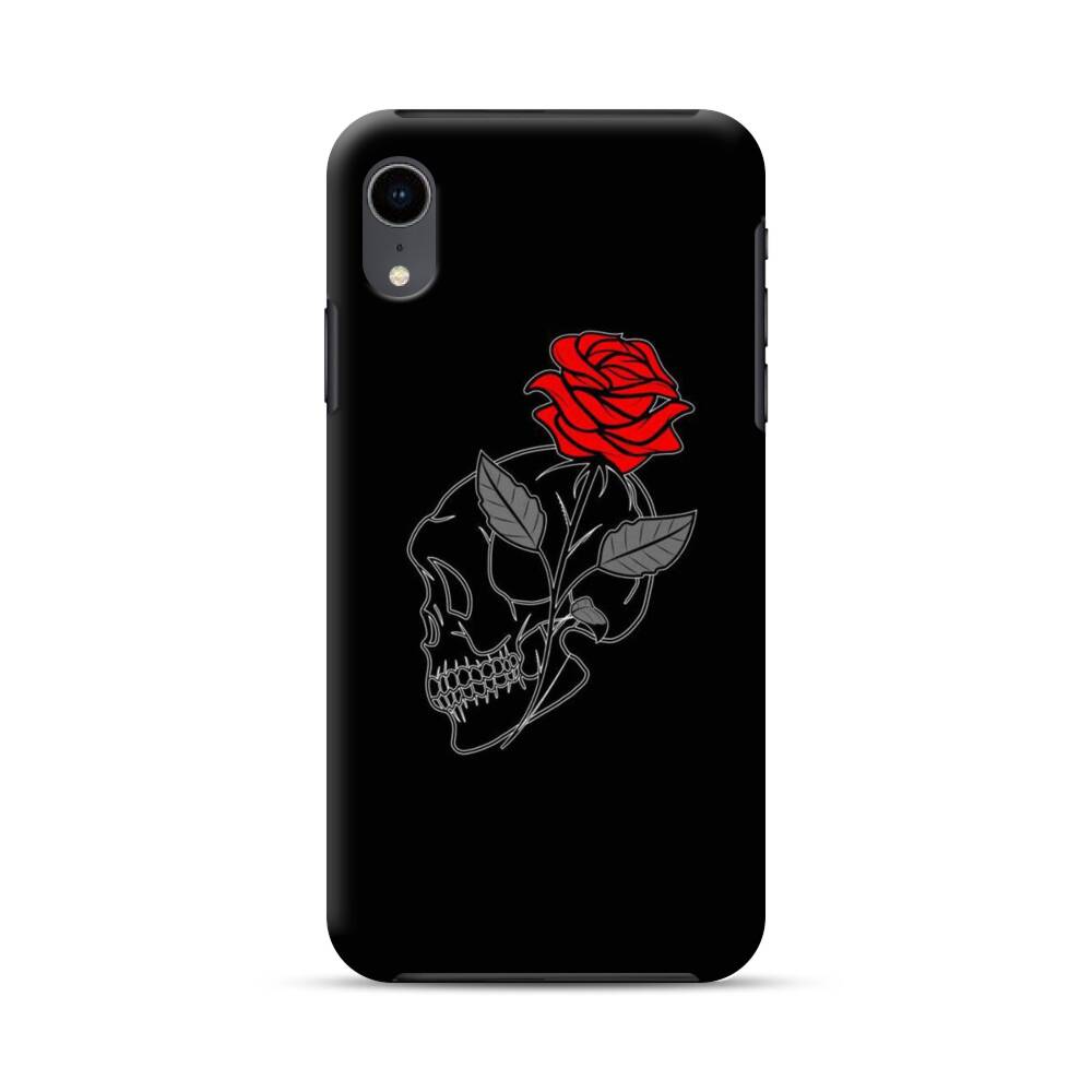 Schädel mit Rose iPhone XR Hybrid Hülle● Rundum bedruckbar