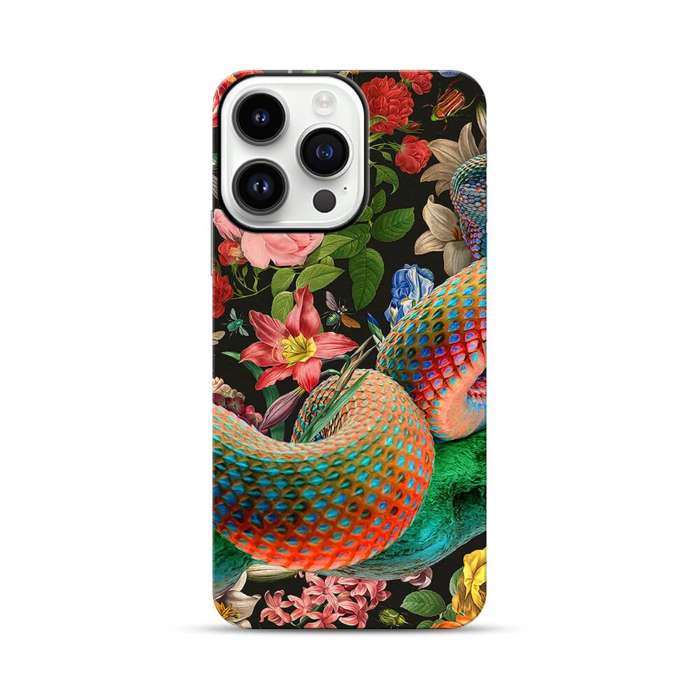 Fantasy Schlange und Blumen in dem Garten Apple iPhone 14 Pro Max Hybrid Case● Rundum bedruckbar