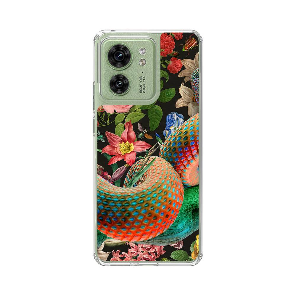 Fantasy Schlange und Blumen in dem Garten Motorola Edge 40 Silikon Hülle● Sehr robust & langlebig