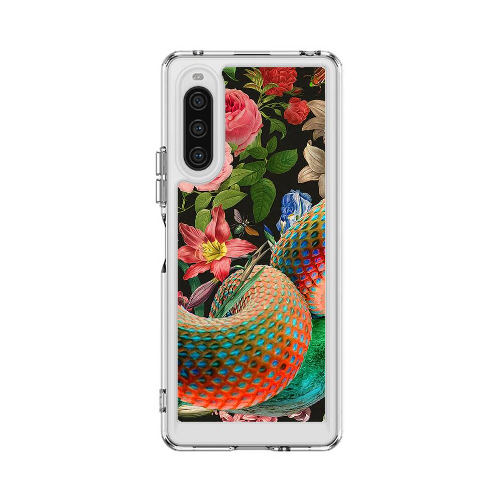 Fantasy Schlange und Blumen in dem Garten Sony Xperia 10 V Silikon Hülle● Sehr robust & langlebig