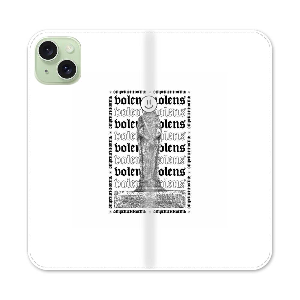 Lächelnde Skulptur Apple iPhone 15 Plus Flip Case● Seitlich klappbar