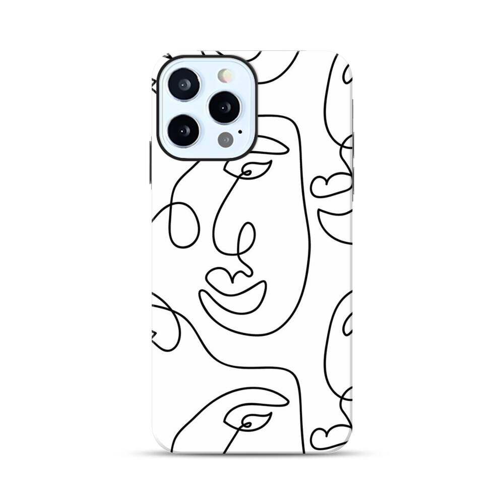 Line Art Porträt Mädchen Apple iPhone 12 Pro Hybrid Case● Rundum bedruckbar