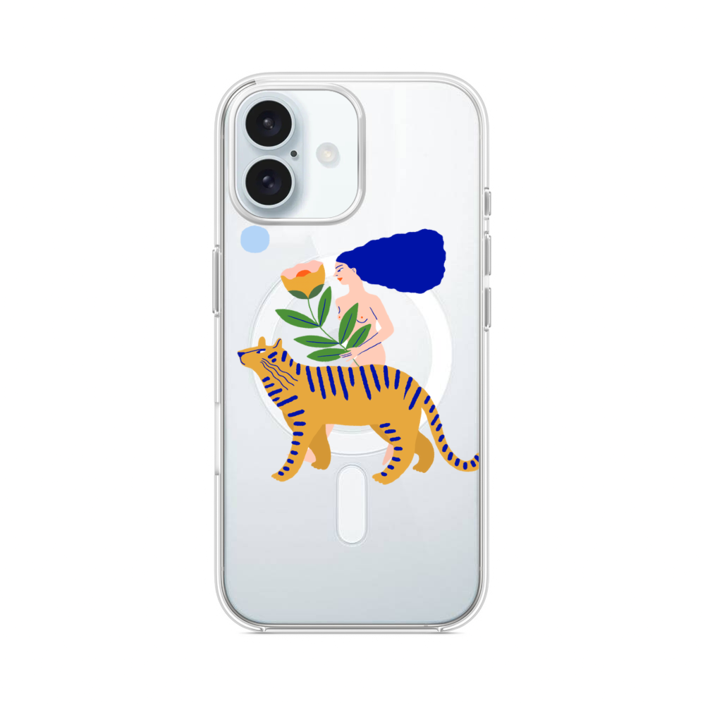 Dame und Tiger iPhone 16 Plus MagSafe‑kompatible Silikonhülle mit Kamera‑Kickstand● Sehr robust & langlebig