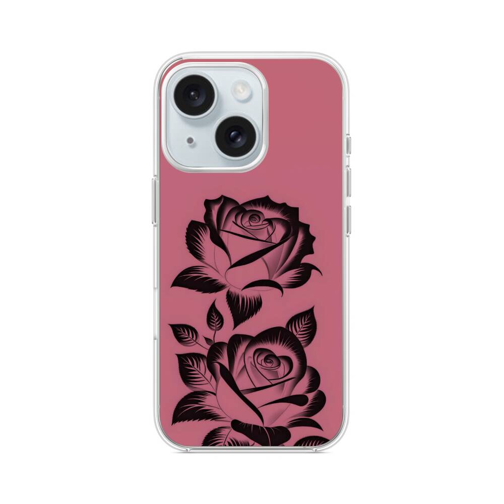 Dunkle Rosen iPhone 15 MagSafe‑kompatible Silikonhülle mit Kamera‑Kickstand● Sehr robust & langlebig