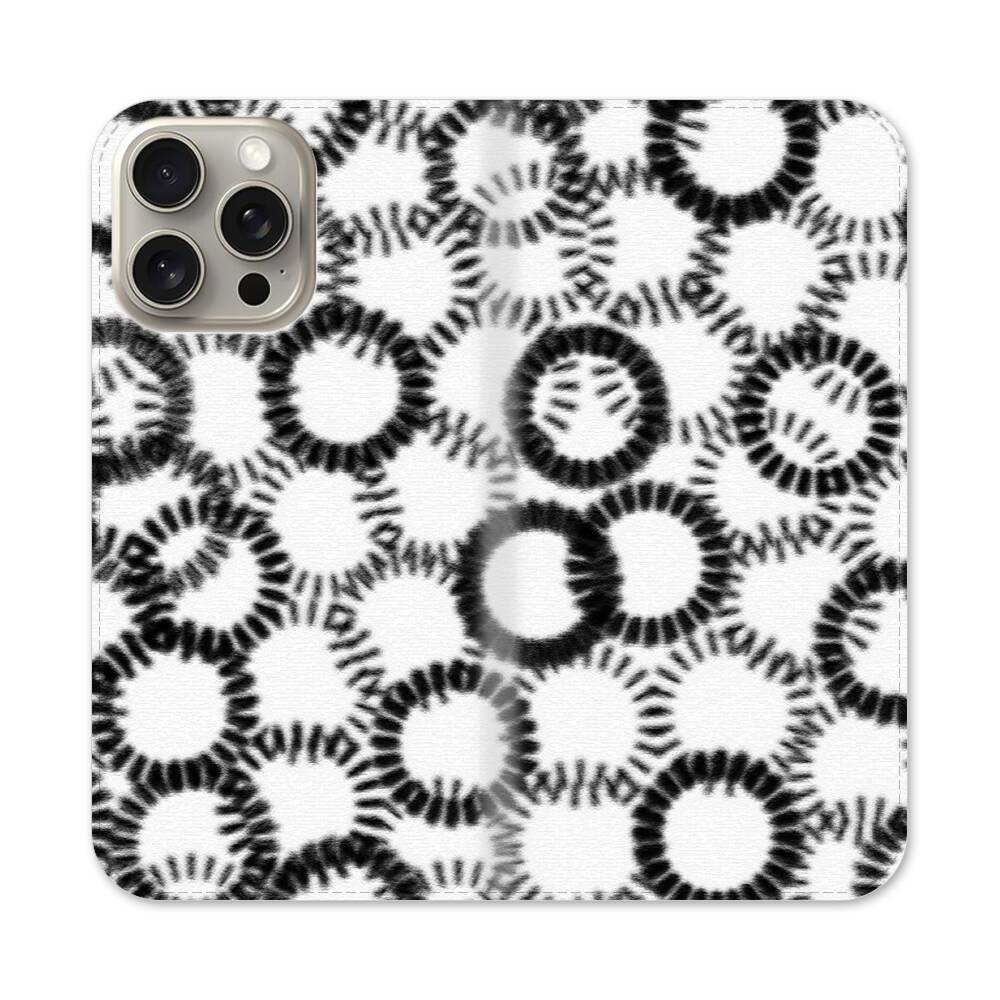 Nahtlose schwarze Kreise Apple iPhone 15 Pro Max Flip Case● Seitlich klappbar