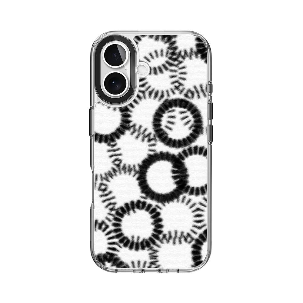 Nahtlose schwarze Kreise Apple iPhone 16 Silikon Hülle● Sehr robust & langlebig