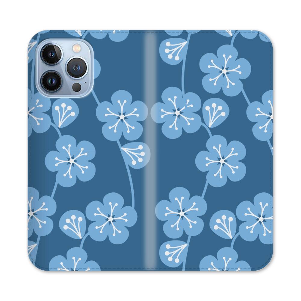 Indigo Kirschblüten Apple iPhone 13 Pro Max Flip Case● Seitlich klappbar