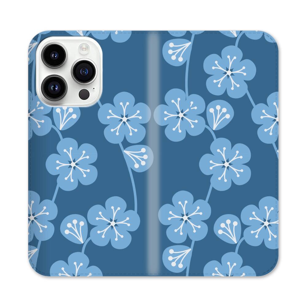 Indigo Kirschblüten Apple iPhone 14 Pro Flip Case● Seitlich klappbar