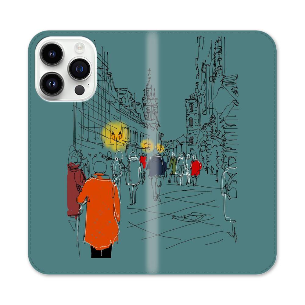 Nachtmenschenmenge Apple iPhone 14 Pro Max Flip Case● Seitlich klappbar