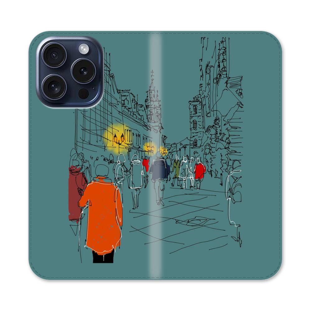 Nachtmenschenmenge Apple iPhone 15 Pro Flip Case● Seitlich klappbar