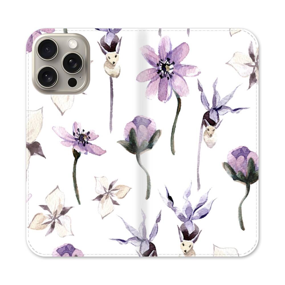 Lila Wildblumen Apple iPhone 15 Pro Max Flip Case● Seitlich klappbar